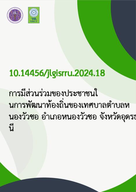| Keyword | การมีส่วนร่วม, การพัฒนาท้องถิ่น, เทศบาลตำบลหนองวัวซอ |