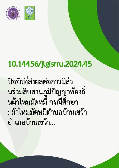 ปัจจัยที่ส่งผลต่อการมีส่วนร่วมสืบสานภูมิปัญญาท้องถิ่นผ้าไหมมัดหมี่ กรณีศึกษา : ผ้าไหมมัดหมี่ตำบลบ้านเขว้า อำเภอบ้านเขว้า จังหวัดชัยภูมิ