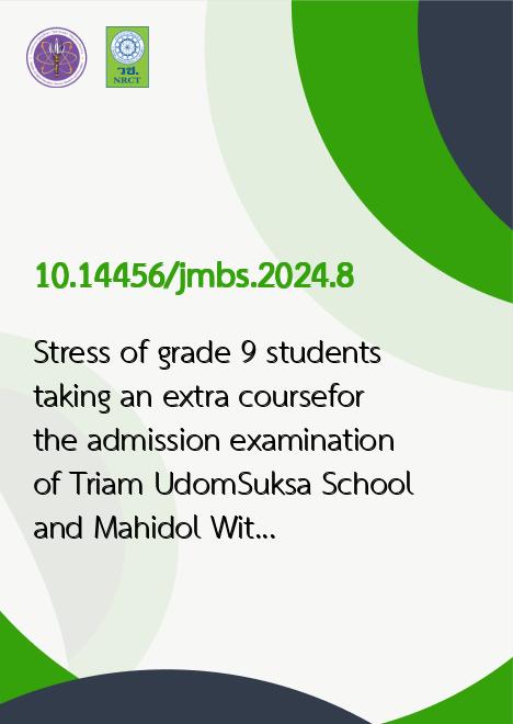 | Title | Stress of grade 9 students taking an extra coursefor the admission examination of Triam UdomSuksa School and Mahidol Wittayanusorn School |