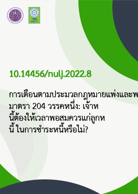 | Title | การเตือนตามประมวลกฎหมายแพ่งและพาณิชย์ มาตรา 204 วรรคหนึ่ง: เจ้าหนี้ต้องให้เวลาพอสมควรแก่ลูกหนี้ ในการชำระหนี้หรือไม่? |
