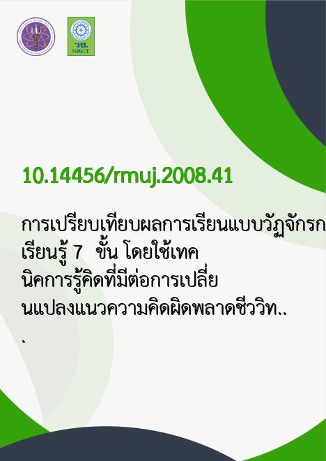 | Keyword | วัฏจักรการเรียนรู้ 7 ขั้น, โดยใช้เทคนิคการรู้คิด, แนวความคิดเลือก, การรู้คิด, ทักษะกระบวนการทางวิทยาศาสตร์ขั้นพื้นฐาน |
