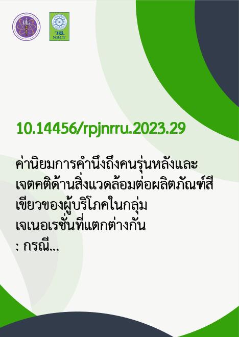 ค่านิยมการคำนึงถึงคนรุ่นหลังและเจตคติด้านสิ่งแวดล้อมต่อผลิตภัณฑ์สีเขียวของผู้บริโภคในกลุ่มเจเนอเรชั่นที่แตกต่างกัน: กรณีศึกษาจังหวัดนครราชสีมา |