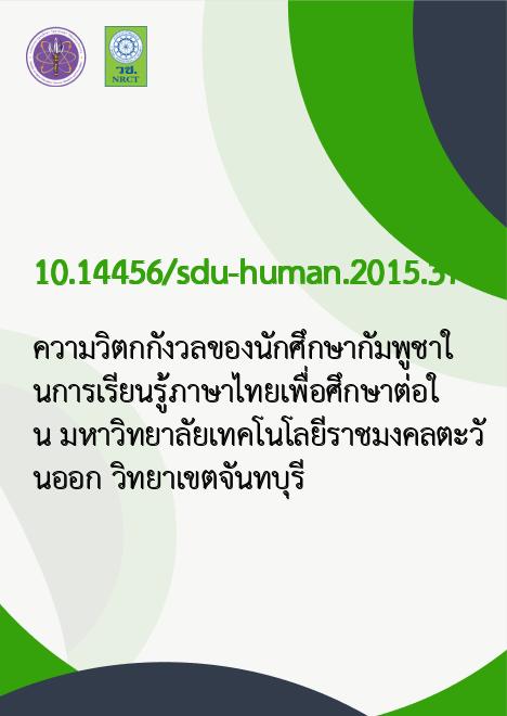 ความวิตกกังวลของนักศึกษากัมพูชาในการเรียนรู้ภาษาไทยเพื่อศึกษาต่อใน มหาวิทยาลัยเทคโนโลยีราชมงคลตะวันออก วิทยาเขตจันทบุรี