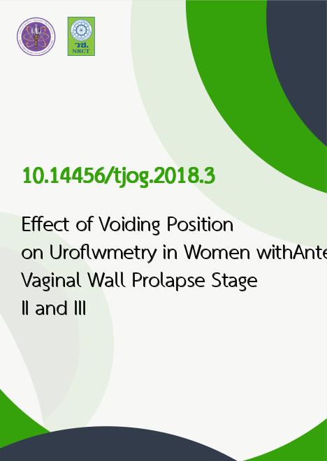 Effect of Voiding Position on Uroflwmetry in Women withAnterior Vaginal Wall Prolapse Stage II and III |