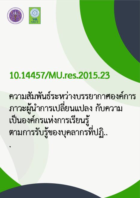 | Keyword | ความเป็นองค์การแห่งการเรียนรู้, บรรยาการองค์การ |