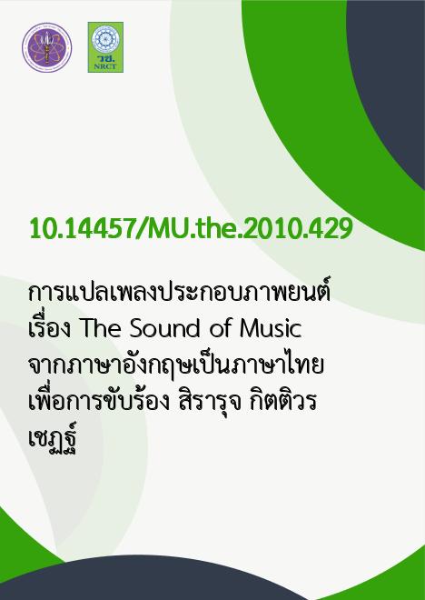 Title การแปลเพลงประกอบภาพยนต์ เรื่อง The Sound of Music จากภาษาอังกฤษเป็นภาษาไทยเพื่อการขับร้อง /