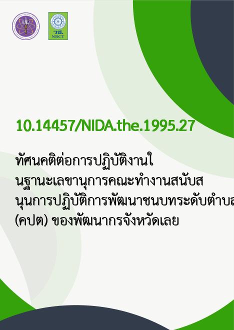 | Title | ทัศนคติต่อการปฏิบัติงานในฐานะเลขานุการคณะทำงานสนับสนุนการปฏิบัติการพัฒนาชนบทระดับตำบล (คปต.) ของพัฒนากรจังหวัดเลย |