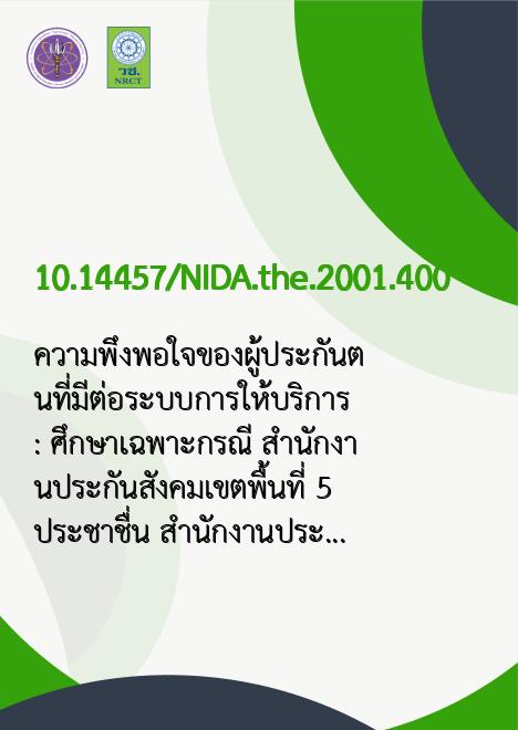 Title ความพึงพอใจของผู้ประกันตนที่มีต่อระบบการให้บริการ : ศึกษาเฉพาะกรณี สำนักงานประกันสังคมเขตพื้นที่ 5 ประชาชื่น สำนักงานประกันสังคม /