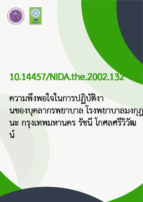 Title ความพึงพอใจในการปฏิบัติงานของบุคลากรพยาบาล โรงพยาบาลมงกุฎวัฒนะ กรุงเทพมหานคร /