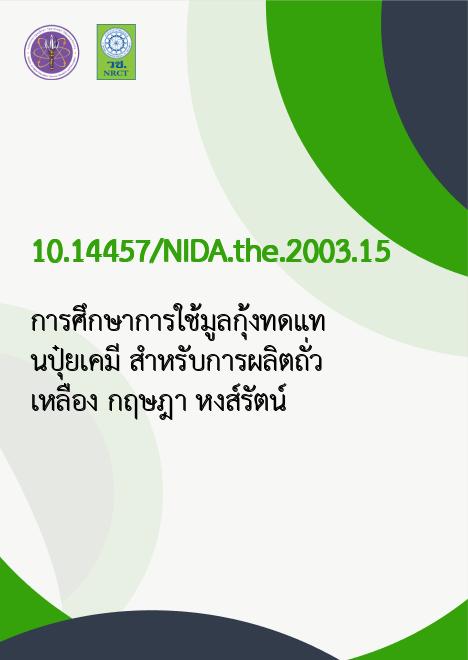 | Title | การศึกษาการใช้มูลกุ้งทดแทนปุ๋ยเคมี สำหรับการผลิตถั่วเหลือง / |