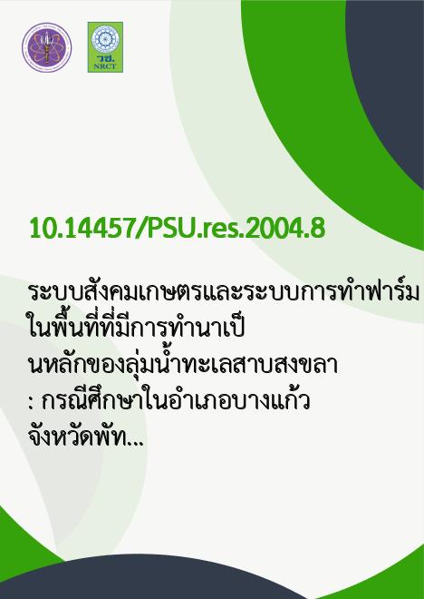 ระบบสังคมเกษตรและระบบการทำฟาร์ม ในพื้นที่ที่มีการทำนาเป็นหลักของลุ่มน้ำทะเลสาบสงขลา : กรณีศึกษาในอำเภอบางแก้ว จังหวัดพัทลุง |