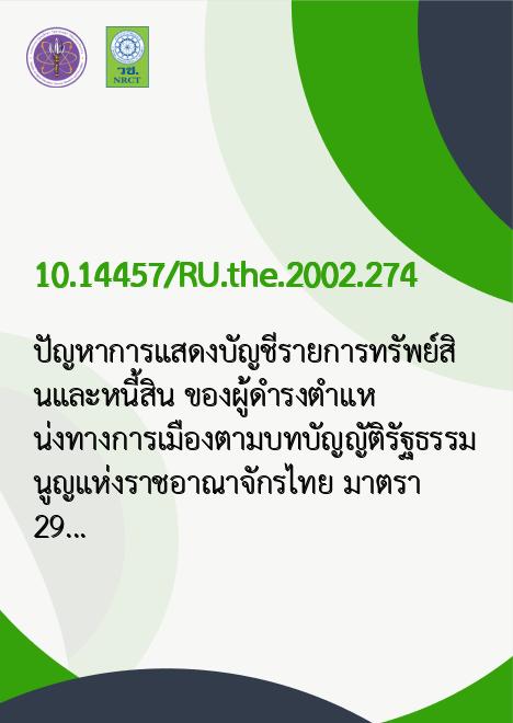 Title ปัญหาการแสดงบัญชีรายการทรัพย์สินและหนี้สิน ของผู้ดำรงตำแหน่งทางการเมืองตามบทบัญญัติรัฐธรรมนูญแห่งราชอาณาจักรไทย มาตรา 291 /