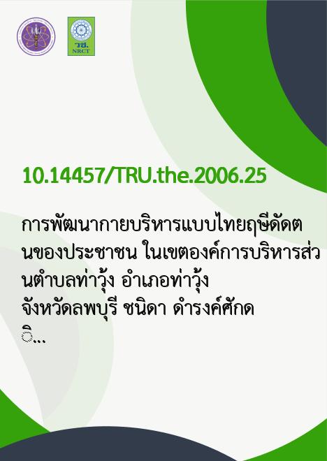 Title การพัฒนากายบริหารแบบไทยฤษีดัดตนของประชาชน ในเขตองค์การบริหารส่วนตำบลท่าวุ้ง อำเภอท่าวุ้ง จังหวัดลพบุรี /