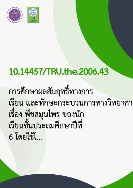 Title การศึกษาผลสัมฤทธิ์ทางการเรียน และทักษะกระบวนการทางวิทยาศาสตร์ เรื่อง พืชสมุนไพร ของนักเรียนชั้นประถมศึกษาปีที่ 6 โดยใช้โครงงานวิทยาศาสตร์ /