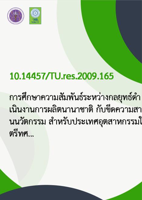 การศึกษาความสัมพันธ์ระหว่างกลยุทธ์ดำเนินงาน/การผลิตนานาชาติ กับขีดความสามารถด้านนวัตกรรม สำหรับประเทศอุตสาหกรรมใหม่ /ตรีทศ เหล่าศิริหงษ์ทอง |