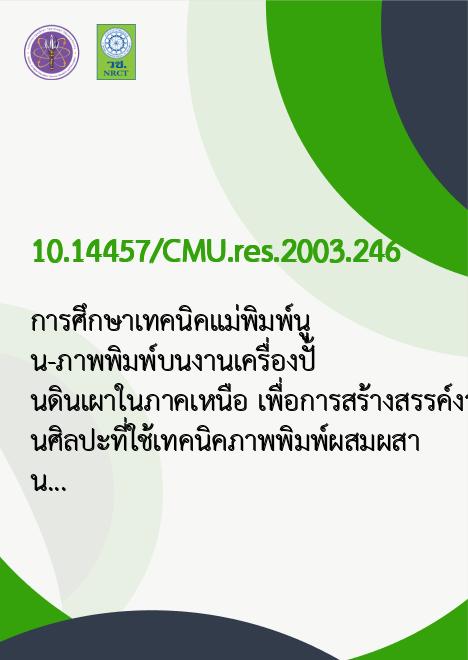 การศึกษาเทคนิคแม่พิมพ์นูน-ภาพพิมพ์บนงานเครื่องปั้นดินเผาในภาคเหนือ เพื่อการสร้างสรรค์งานศิลปะที่ใช้เทคนิคภาพพิมพ์ผสมผสานกับเครื่องปั้นดินเผา /กมล ศรีวิชัยนันท์ |