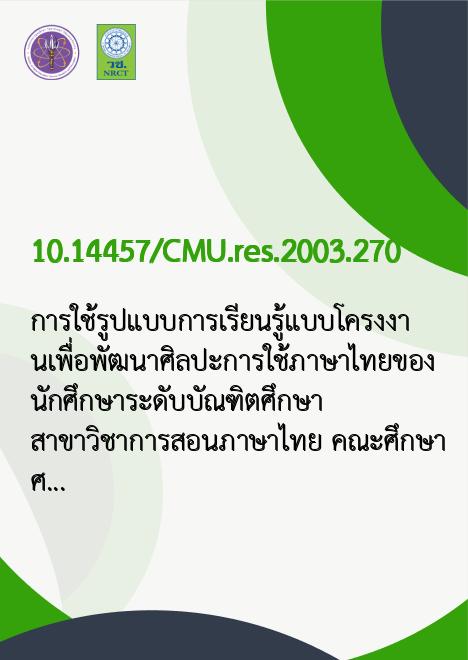 การใช้รูปแบบการเรียนรู้แบบโครงงานเพื่อพัฒนาศิลปะการใช้ภาษาไทยของนักศึกษาระดับบัณฑิตศึกษา สาขาวิชาการสอนภาษาไทย คณะศึกษาศาสตร์ มหาวิทยาลัยเชียงใหม่ /สมร เจนจิจะ |