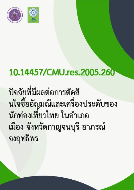 ปัจจัยที่มีผลต่อการตัดสินใจซื้ออัญมณีและเครื่องประดับของนักท่องเที่ยวไทย ในอำเภอเมือง จังหวัดกาญจนบุรี /อาภรณ์ จงฤทธิพร |