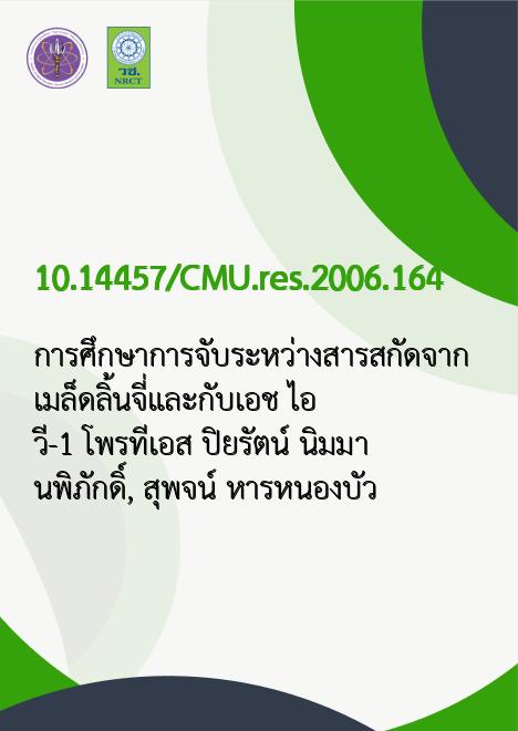 การศึกษาการจับระหว่างสารสกัดจากเมล็ดลิ้นจี่และกับเอช ไอ วี-1 โพรทีเอส /ปิยรัตน์ นิมมานพิภักดิ์, สุพจน์ หารหนองบัว |
