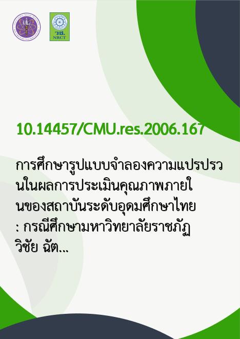 การศึกษารูปแบบจำลองความแปรปรวนในผลการประเมินคุณภาพภายในของสถาบันระดับอุดมศึกษาไทย : กรณีศึกษามหาวิทยาลัยราชภัฏ /วิชัย ฉัตรทินวัฒน์ |