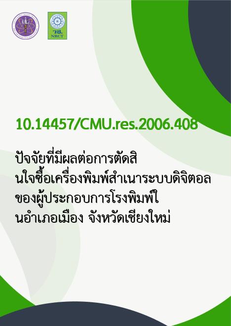ปัจจัยที่มีผลต่อการตัดสินใจซื้อเครื่องพิมพ์สำเนาระบบดิจิตอล ของผู้ประกอบการโรงพิมพ์ในอำเภอเมือง จังหวัดเชียงใหม่ |
