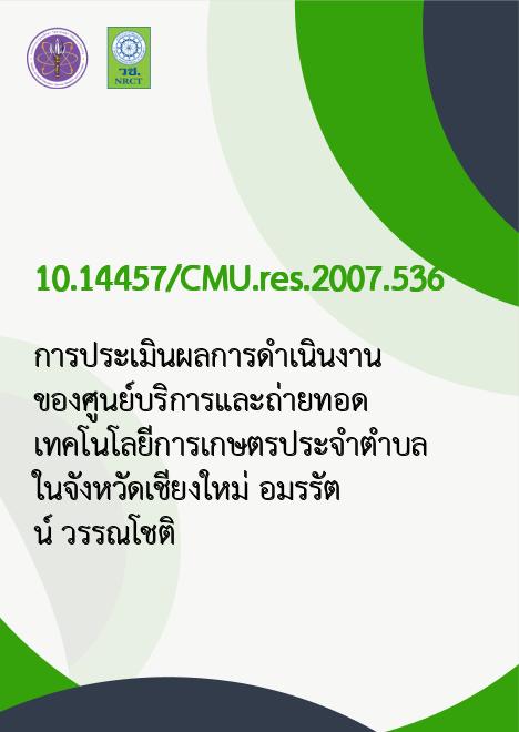 การประเมินผลการดำเนินงาน ของศูนย์บริการและถ่ายทอดเทคโนโลยีการเกษตรประจำตำบล ในจังหวัดเชียงใหม่ /อมรรัตน์ วรรณโชติ |