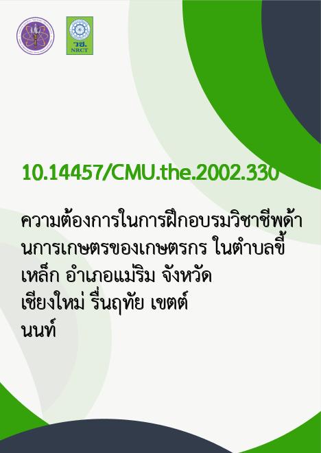 | Title | ความต้องการในการฝึกอบรมวิชาชีพด้านการเกษตรของเกษตรกร ในตำบลขี้เหล็ก อำเภอแม่ริม จังหวัดเชียงใหม่ / |
