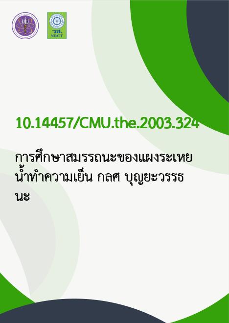 กลศ บุญยะวรรธนะ. 2546. การศึกษาสมรรถนะของแผงระเหยน้ำทำความเย็น /. ม.ป.ท.:มหาวิทยาลัยเชียงใหม่,; 10.14457/CMU.the.2003.324
