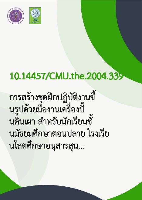 | Title | การสร้างชุดฝึกปฏิบัติงานขึ้นรูปด้วยมืองานเครื่องปั้นดินเผา สำหรับนักเรียนชั้นมัธยมศึกษาตอนปลาย โรงเรียนโสตศึกษาอนุสารสุนทร จังหวัดเชียงใหม่ / |