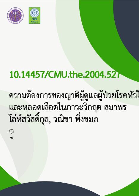 | Title | ความต้องการของญาติผู้ดูแลผู้ป่วยโรคหัวใจ และหลอดเลือดในภาวะวิกฤต / |
