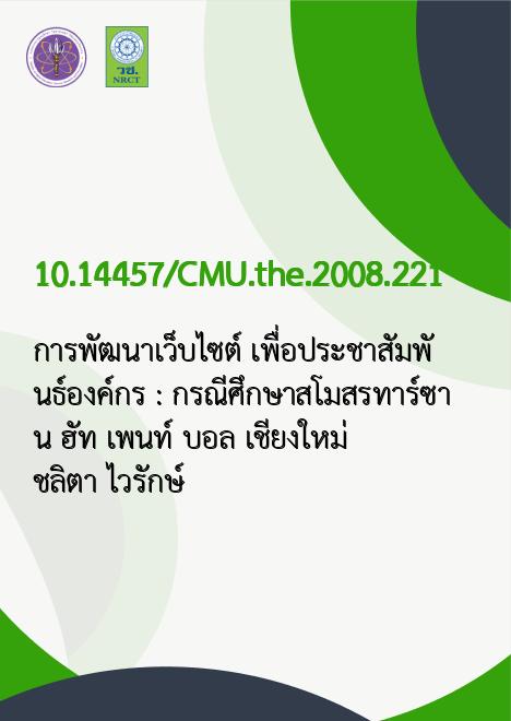 | Title | การพัฒนาเว็บไซต์ เพื่อประชาสัมพันธ์องค์กร : กรณีศึกษาสโมสรทาร์ซาน ฮัท เพนท์ บอล เชียงใหม่ / |