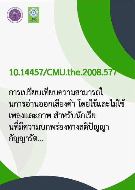 | Keyword | นักเรียนที่มีความบกพร่องทางสติปัญญา, การอ่านออกเสียง, ความสามารถทางการอ่าน |
