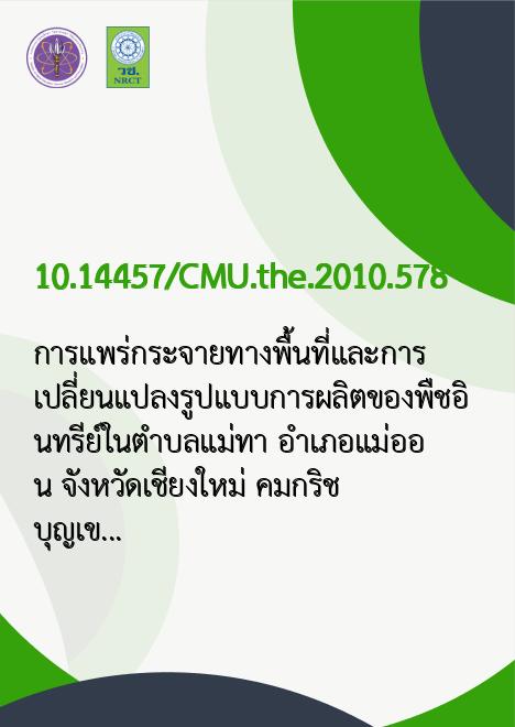 | Title | การแพร่กระจายทางพื้นที่และการเปลี่ยนแปลงรูปแบบการผลิตของพืชอินทรีย์ในตำบลแม่ทา อำเภอแม่ออน จังหวัดเชียงใหม่ / |