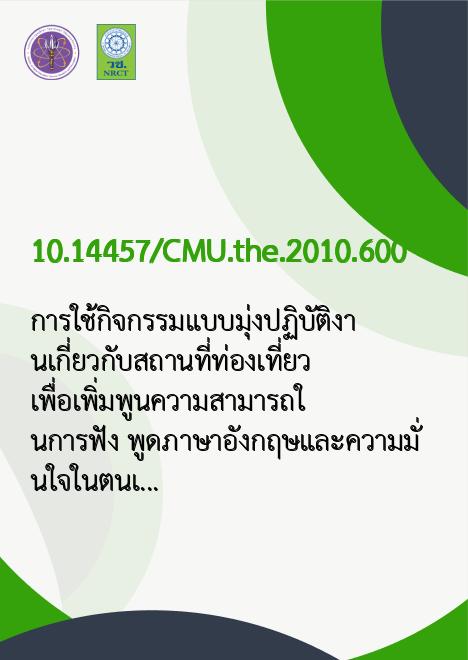 | Keyword | กิจกรรมแบบมุ่งปฏิบัติงาน, ความมั่นใจในตนเอง, ความสามารถทางการฟัง-พูดภาษาอังกฤษ, ภาษาอังกฤษ |