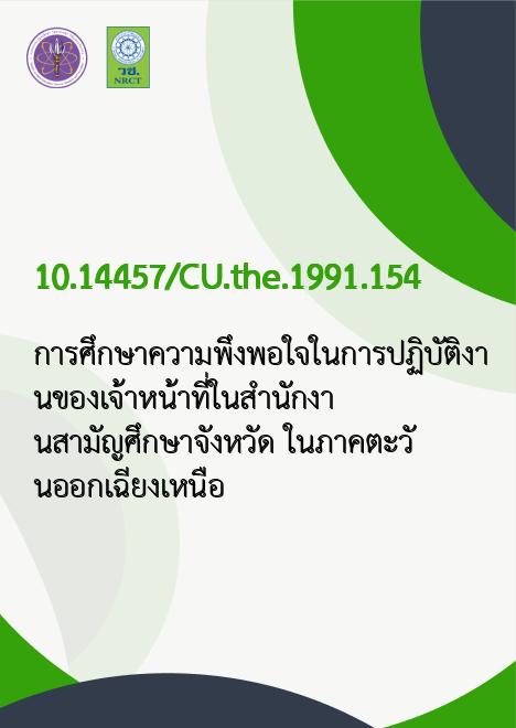 การศึกษาความพึงพอใจในการปฏิบัติงานของเจ้าหน้าที่ในสำนักงานสามัญศึกษาจังหวัด ในภาคตะวันออกเฉียงเหนือ |