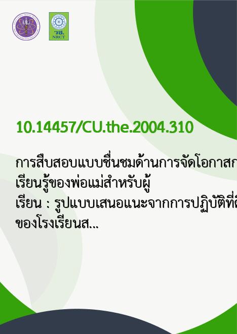 | Title | การสืบสอบแบบชื่นชมด้านการจัดโอกาสการเรียนรู้ของพ่อแม่สำหรับผู้เรียน : รูปแบบเสนอแนะจากการปฏิบัติที่ดีที่สุด ของโรงเรียนสาธิตมหาวิทยาลัยรามคำแหง / |