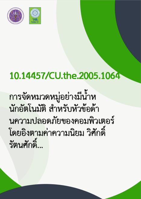 | Title | การจัดหมวดหมู่อย่างมีน้ำหนักอัตโนมัติ สำหรับหัวข้อด้านความปลอดภัยของคอมพิวเตอร์ โดยอิงตามค่าความนิยม / |