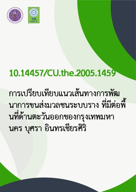 | Title | การเปรียบเทียบแนวเส้นทางการพัฒนาการขนส่งมวลชนระบบราง ที่มีต่อพื้นที่ด้านตะวันออกของกรุงเทพมหานคร / |