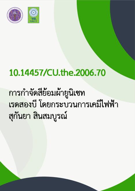 การกำจัดสีย้อมผ้ายูนิเซทเรดสองบี โดยกระบวนการเคมีไฟฟ้า /สุกันยา สินสมบูรณ์ |