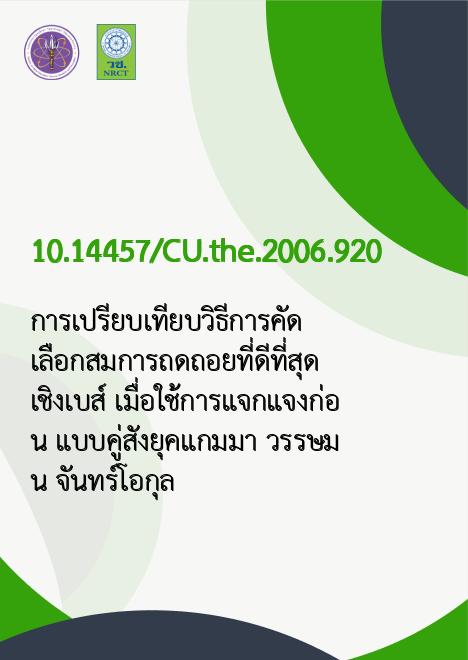 การเปรียบเทียบวิธีการคัดเลือกสมการถดถอยที่ดีที่สุดเชิงเบส์ เมื่อใช้การแจกแจงก่อน แบบคู่สังยุคแกมมา /วรรษมน จันทร์โอกุล |