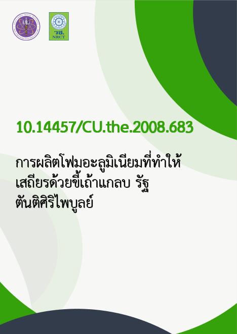 การผลิตโฟมอะลูมิเนียมที่ทำให้เสถียรด้วยขี้เถ้าแกลบ /รัฐ ตันติศิริไพบูลย์ |