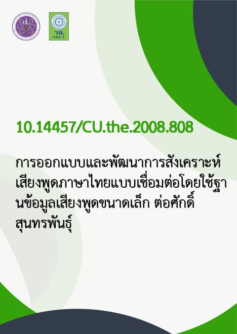 การออกแบบและพัฒนาการสังเคราะห์เสียงพูดภาษาไทยแบบเชื่อมต่อโดยใช้ฐานข้อมูลเสียงพูดขนาดเล็ก /ต่อศักดิ์ สุนทรพันธุ์ |