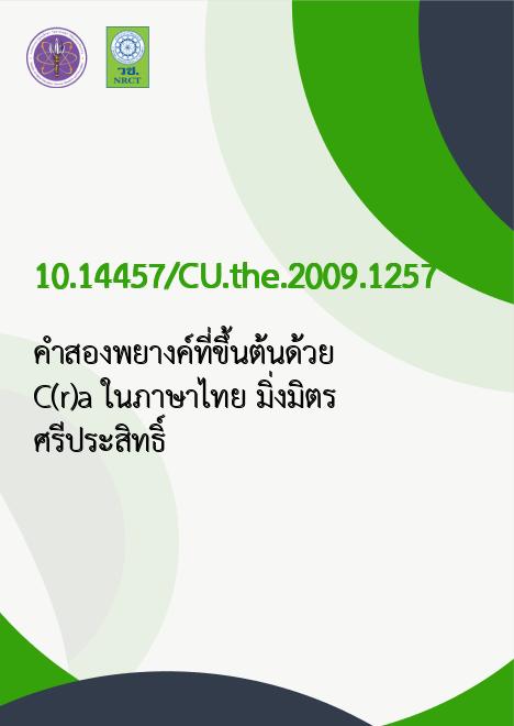 มิ่งมิตร ศรีประสิทธิ์. 2552. คำสองพยางค์ที่ขึ้นต้นด้วย C(r)a ในภาษาไทย /. ม.ป.ท.:จุฬาลงกรณ์มหาวิทยาลัย,; 10.14457/CU.the.2009.1257