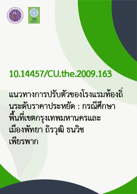แนวทางการปรับตัวของโรงแรมท้องถิ่นระดับราคาประหยัด : กรณีศึกษา พื้นที่เขตกรุงเทพมหานครและเมืองพัทยา /ถิรวุฒิ ธนวิชเพียรพาก |