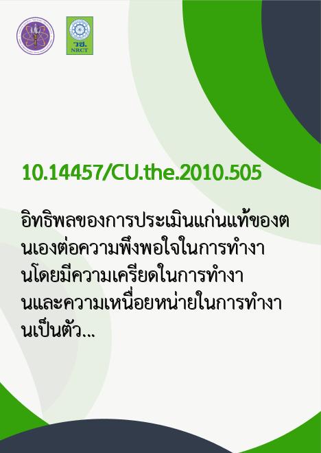 | Keyword | ความพอใจในการทำงาน, ความเครียดในการทำงาน, ความเหนื่อยหน่ายในการทำงาน |