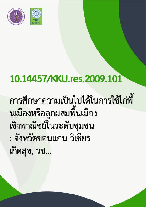 การศึกษาความเป็นไปได้ในการใช้ไก่พื้นเมืองหรือลูกผสมพื้นเมืองเชิงพาณิชย์ในระดับชุมชน : จังหวัดขอนแก่น /วิเชียร เกิดสุข, วชิราพร เกิดสุข |