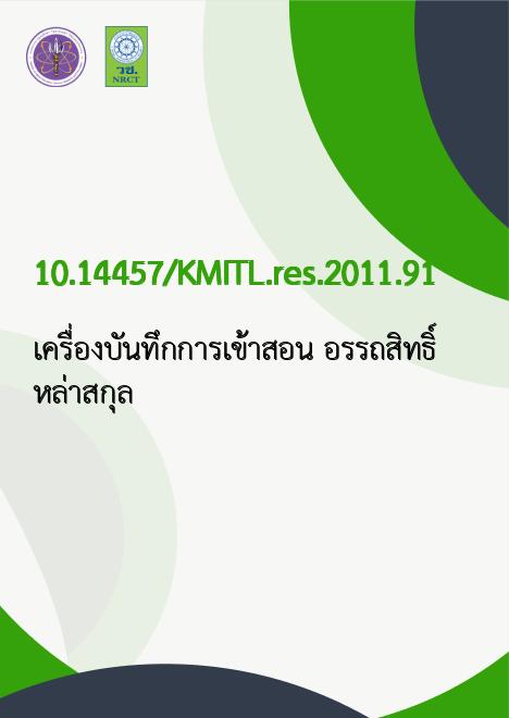 อรรถสิทธิ์ หล่าสกุล. 2554. เครื่องบันทึกการเข้าสอน /. ม.ป.ท.:สถาบันเทคโนโลยีพระจอมเกล้าเจ้าคุณทหารลาดกระบัง,; 10.14457/KMITL.res.2011.91
