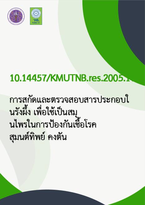 | Title | การสกัดและตรวจสอบสารประกอบในรังผึ้ง เพื่อใช้เป็นสมุนไพรในการป้องกันเชื้อโรค / |