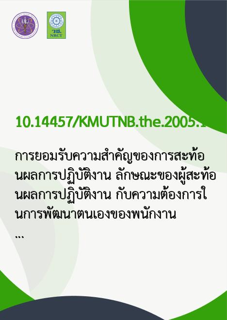 | Title | การยอมรับความสำคัญของการสะท้อนผลการปฏิบัติงาน ลักษณะของผู้สะท้อนผลการปฏิบัติงาน กับความต้องการในการพัฒนาตนเองของพนักงาน / |