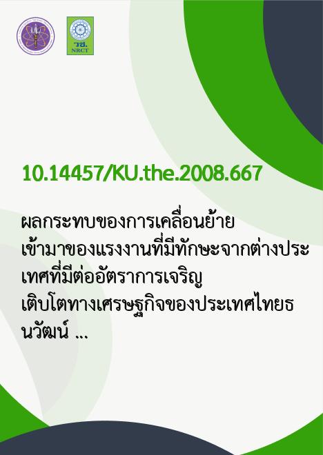 | Title | ผลกระทบของการเคลื่อนย้ายเข้ามาของแรงงานที่มีทักษะจากต่างประเทศที่มีต่ออัตราการเจริญเติบโตทางเศรษฐกิจของประเทศไทย |